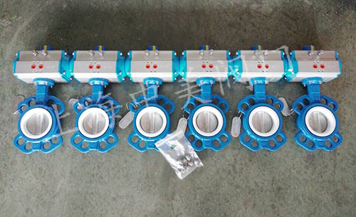 今天下午重庆客户订购的6台气动蝶阀准备发货,这6台气动蝶阀密封圈采用的是四氟的。四氟的密封圈会耐腐蚀,这次他们订购的气动蝶阀采用的304板。因为他们现场配的电磁阀、限位开关、三联件,所以这次就没配这些附件。