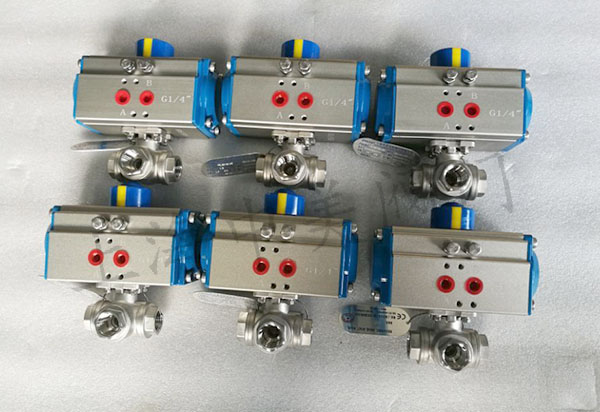 我们都知道三通球阀有法兰三通球阀和螺纹三通球阀,三通球阀都是有L型和T型的。这次江西的一位客户订购了6台螺纹三通气动球阀,这几台