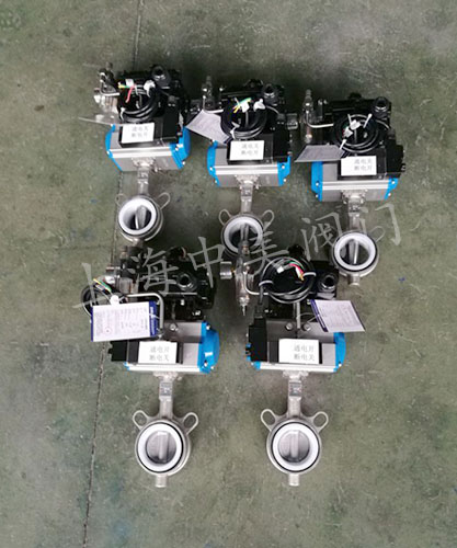 上海中美阀门江阴客户的5台不锈钢气动蝶阀今天发货!