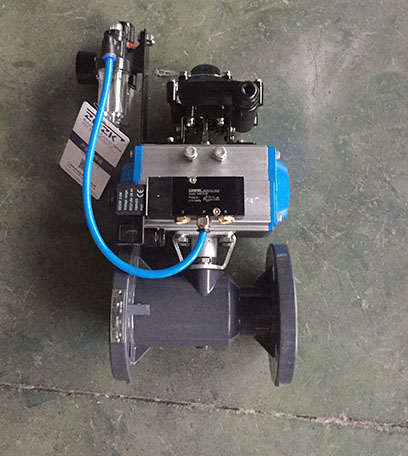 我们平时见过的塑料气动球阀有很多都是螺纹的塑料气动球阀,今天有位客户来咨询塑料气动法兰球阀,问我们厂有没有生产这种气动球阀,我们销售和技术沟通后是可以做这种塑料法兰气动球阀的。