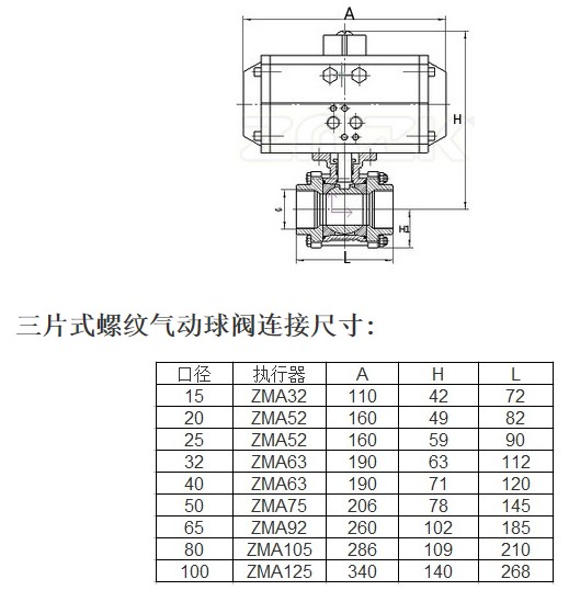 三片式螺纹气动球阀的主要外形尺寸图:  想了解更多阀门尺寸图请加微信号:zmzkfm 扫描二维码可免费获得阀门样本资料噢!  | ||||||||||||||||||||||||||||||||||||||||||||||||||||||||||||||||