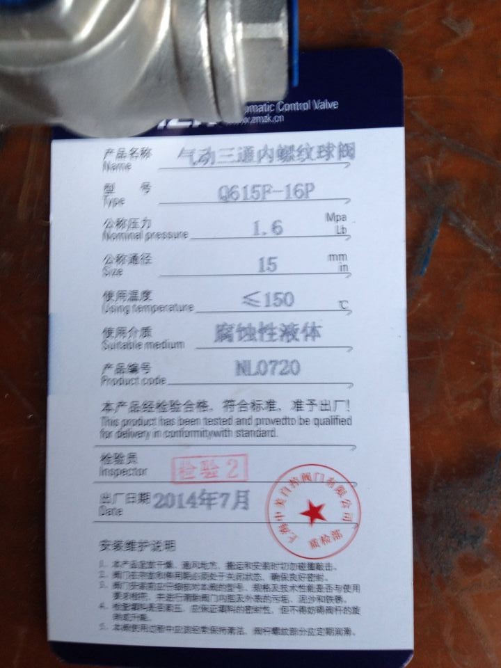 今天江苏包装机械有限公司的何经理又下了15套DN15 气动内螺纹三通球阀的订单, 我的收获离不开身边的每一位同事,特别是生产后勤部,他们有时为了帮我们发好每 2、添加朋友→搜号码→“zmzkfm”→添加关注